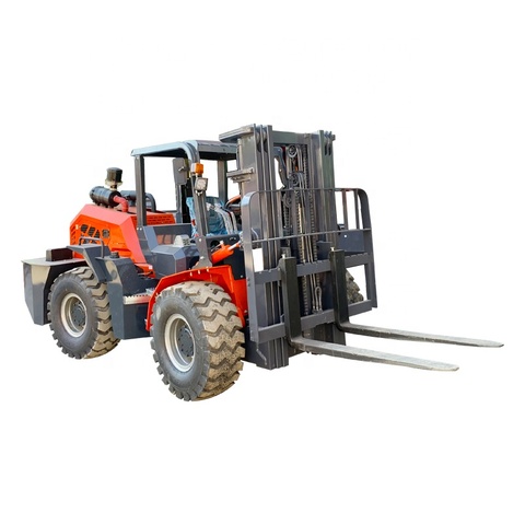 Novo 5 Ton Diesel Empilhadeira Caminhão Terreno Robusto Quatro Rodas Drive Assento Confortável Operador para Fazenda Empilhadeira De Combustão Interna